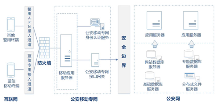 內(nèi)網網站(zhàn)移動端前置應用(yò♦↕ng)程序部署在公安移動專網應用(yòng)♦δ服務器(qì)。藍(lán)信移動終端通(tōng)過藍(lán)信專用• &(yòng)通(tōng)道(dào)、無線警務應用(yòn✘≠λg)管理(lǐ)平台提供的(de)通(tōng)信AP¥ I,經過Token驗證服務、OAuth身(shēnγπ)份認證服務建立安全可(kě)靠的(de)網絡數(shù)據通(tō©∞★ng)道(dào),向公安內(nèi)網發送接口服務請(qǐng)求 ✔;其他(tā)警用(yòng)終端通(tōng)過警用(yòn®≈g)APN接入通(tōng)道(dào),經過認證接入、訪問(λ<wèn)控制(zhì),向公安內(nèiπ☆¶)網發送接口服務請(qǐng)求。公安內(nèi)網的(d≤♦↑e)網站(zhàn)應用(yòng)後置服務為(wèi)移動端前置服務提供數(γδ♣shù)據訪問(wèn)接口,通(tōng)過安全邊↓×界設備響應前置服務器(qì)的(de)請(qǐng)求報(λ↕bào)文(wén),實現(xiàn)跨₹π♥設備、跨網絡的(de)一(yī)體(tǐ)化(huà)應用(y≤òng)。