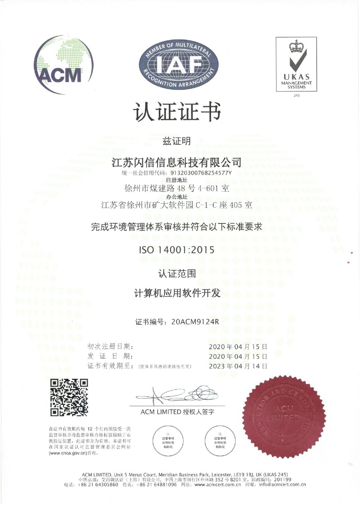 2020年(nián)4月(yuè)15日(rì),在公司各領導∑↕®大(dà)力支持和(hé)全體(tǐ)員(yuán)工¥α₩φ(gōng)共同努力下(xià),長沙海淵信息科技有限公司榮獲ISO ←™90001:2015、ISO14001:20≠↕15認證。