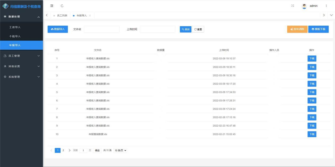 支持多(duō)次批量的(de)薪酬數(shù)據、年(nián)報(bào)收入的(de)快(kuài)速導γε入,薪資源數(shù)據可(kě)追溯、可(₹$kě)核查,為(wèi)管理(lǐ)者提供實時≠≥™(shí)數(shù)據支持。